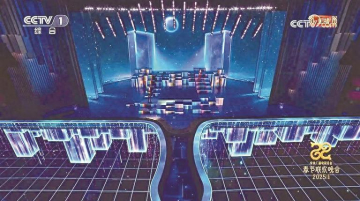 洲明科技采用AI+XR+数字孪生+VP融合拍摄技术,为春晚打造虚拟空间。(图片为央视春晚截图)