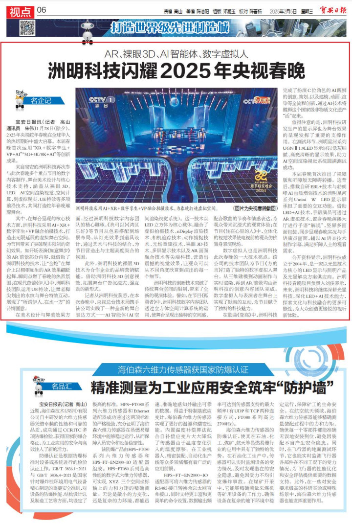 来自宝安的洲明科技再次参与此次春晚多个重点节目的数字内容制作、舞台美术设计与核心技术支持,涵盖从裸眼3D、LEDAI空间渲染视觉、空间计算,到虚拟现实、UE特效等多项前沿技术,共同打造蛇年春晚璀璨舞台。